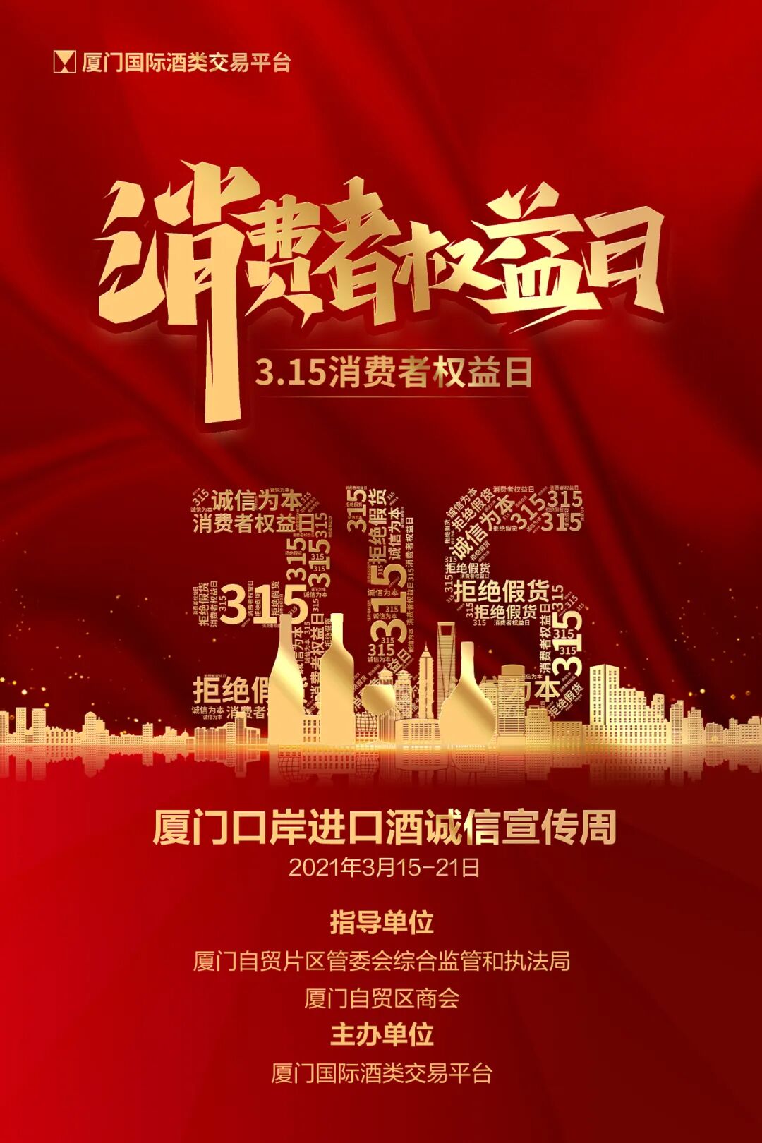 即日起,至2021年3月21日,由厦门自贸片区管委会综合监管和执法局、厦门自贸区商会发起的,厦门国际酒类交易平台主办的厦门口岸进口酒诚信宣传周来啦!